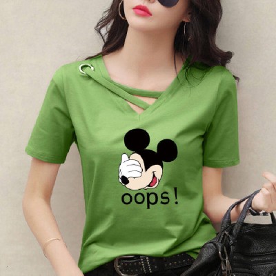韩国T恤女士优雅舒适微笑T女士短袖卡通衬衫